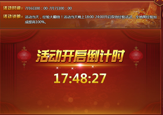 【活动内容】活动当天,经验大翻倍!活动当天晚上18:00-24:00开启双倍经验活动,全地图经验加成提高高。(包括副本)