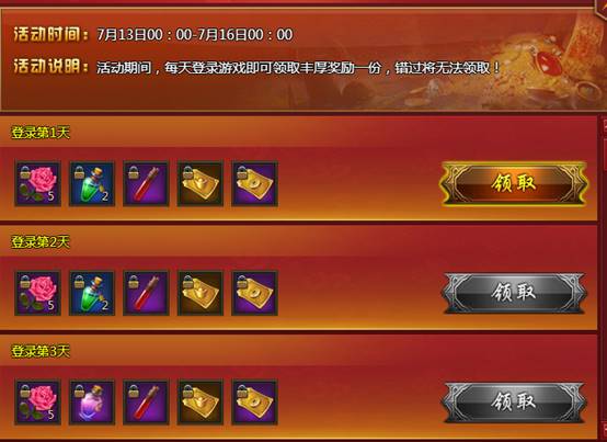 【活动内容】活动期间,每天登录游戏即可领取丰厚奖励一份,错过将无法领取!