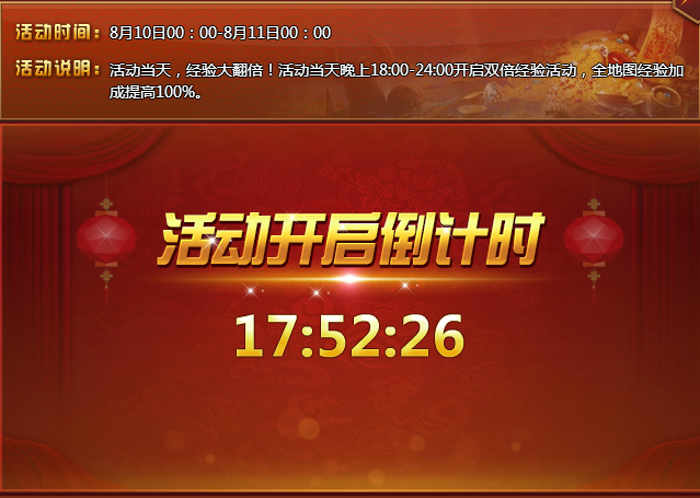 【活动内容】活动当天,经验大翻倍!活动当天晚上18:00-24:00开启双倍经验活动,全地图经验加成提高高。(包括副本)