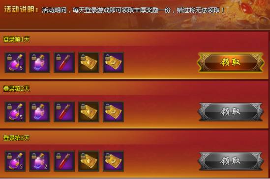 【活动内容】活动期间,每天登录游戏即可领取丰厚奖励一份,错过将无法领取!