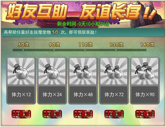 1. 帮助任意好友按摩宠物达到指定次数,可获得体力奖励;